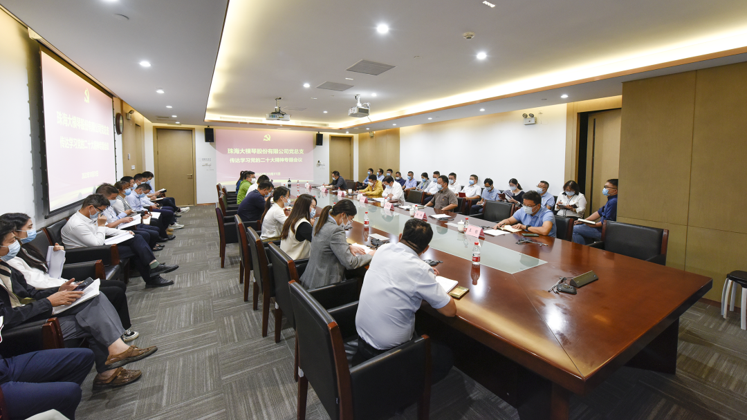 10月31日下午,大橫琴股份黨總支召開專題會議,傳達學習貫徹黨的二十大精神,公司黨總支書記、董事長肖時輝主持會議并作工作部署,大橫琴股份黨總支全體黨員干部參加會議。